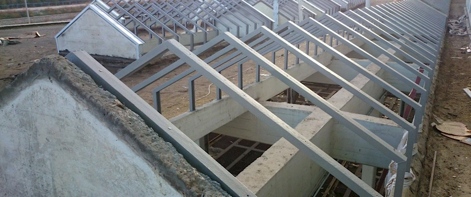 Eğer çatı yapımı, betonarmanın üzerine yapılacaksa mutlaka dikmeleri betona 5 ila 10 cm demir cubuk lamalar ile betona sabitlenmesi gerekir. 40*40 veya 40*60 profillerin çatı parabetinin en az 15 ila 25 cm çıkışı sağlanmalıdır. Bu oran çatı yapımı ve projenin durumuna göre değişiklik gösterebilir. Gizli derelerin yer alması durumunda dış parapetten içe en az 20 cm dere genişliği bırakılmalıdır.